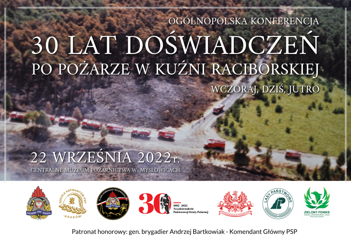 Zapraszamy Państwa na Ogólnopolską Konferencję „30-lat doświadczeń po pożarze w Kuźni Raciborskiej. Wczoraj, dziś, jutro”, która odbędzie się 22 września 2022 r. Wydarzenie odbędzie się w trybie hybrydowym, możecie ją Państwo śledzić w Internecie pod adresem:www.cmp1.revconn.com/konferencja-30-lat-po-kuzni-raciborskiej lub na YouTube https://youtu.be/4fgXqwEP_40. Celem konferencji jest upamiętnienie 30-lecia największego pożaru w Polsce oraz Europie Środkowej po II wojnie