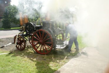 Wśród najoryginalniejszych eksponatów w kolekcji Centralnego Muzeum Pożarnictwa miejsce swoje znalazła pompa parowa wyprodukowana w 1894 r. Dziewiętnastowieczny sprzęt będący odpowiedzią na zagrożenia jakie niosła ze sobą doba industrializacji powstał w lipskiej Fabryce Sprzętu Gaśniczego G.A. Jaucka. Historia zakładu początkowo zajmującego się odlewnictwem sięga 1796 r. Z biegiem lat fabryka rozpoczęła produkcję armatury pożarniczej, w tym również od 1877 r. strażackich sikawek parowych. Fakt ten pozwolił zakładom zająć miejsce wśród czołowych producentów sprzętu gaśniczego w Europie.