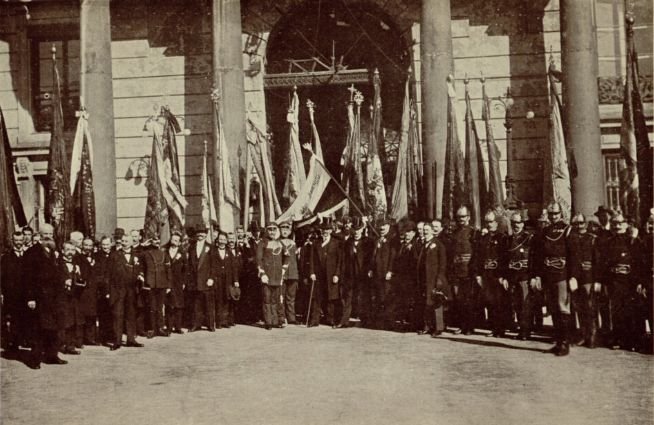 Pierwszym wydarzeniem, kiedy Polacy gremialnie nieśli flagi biało-czerwone był Pochód Narodowy w Warszawie w 1916, z okazji 125. rocznicy uchwalenia Konstytucji 3 maja. Komitet Obchodu przypomniał postanowienie sejmu z 1831 r. W kontekście pożarnictwa warto przypomnieć, że w 1916 r. powstał w Warszawie Związek Floriański – pierwsze w Królestwie Polskim ogólnopaństwowe stowarzyszenie strażackie. Strażacy szli na czele wyżej wspomnianego pochodu.