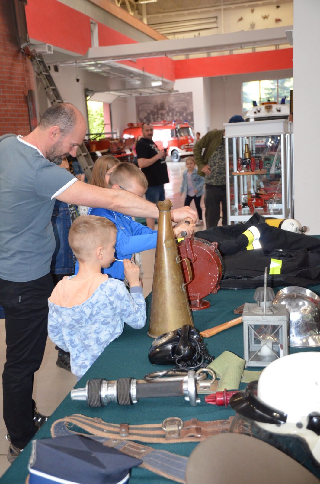 Na stoisku Perły z Magazynu ustawiono eksponaty niedostępne na co dzień dla zwiedzających. Chętni przymierzali: aparat oddechowy, hełmy, mundury oraz mieli możliwość uruchomienia syreny alarmowej. Dzieci zapoznawano z numerem alarmowym 112 i 998 poprzez wykręcenie połączenia na zabytkowym telefonie tarczowym.