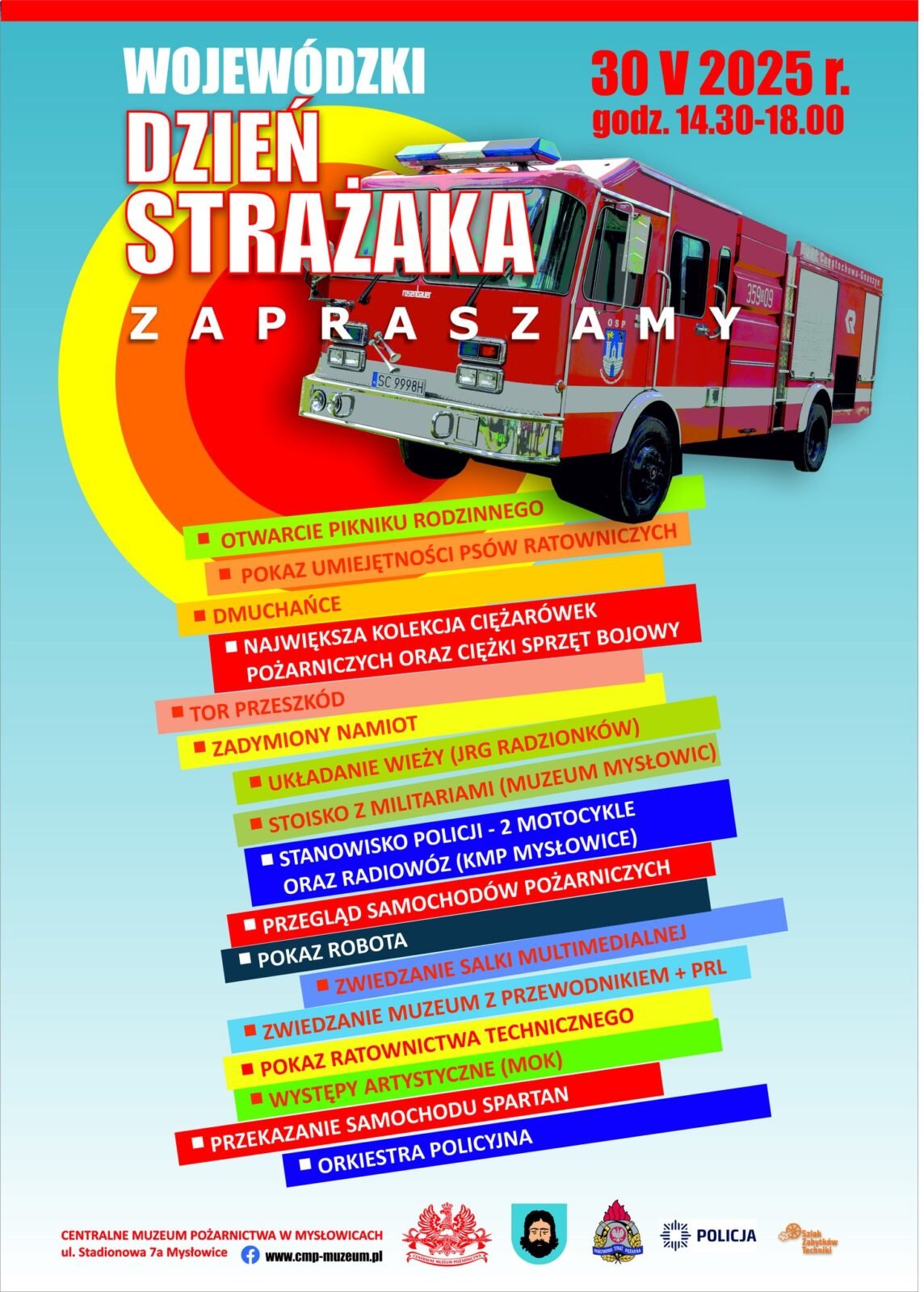 W sobotę 30 maja 2025 roku na na terenie Centralnego Muzeum Pożarnictwa w Mysłowicach odbyły się Wojewódzkie obchody Dnia Strażaka. Muzeum było współorganizatorem wydarzenia, wspólnie z Komendą Wojewódzką Państwowej Straży Pożarnej w Katowicach oraz Oddziałem Wojewódzkim Związku Ochotniczych Straży Pożarnych RP województwa śląskiego. Uroczystość swoją obecnością zaszczycili m.in.: Wiesław Leśniakiewicz – Podsekretarz Stanu w Ministerstwie